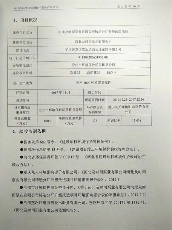 河北及時(shí)雨泵業(yè)有限公司鑄造分廠升級(jí)改造項(xiàng)目竣工環(huán)境保護(hù)驗(yàn)收意見公示